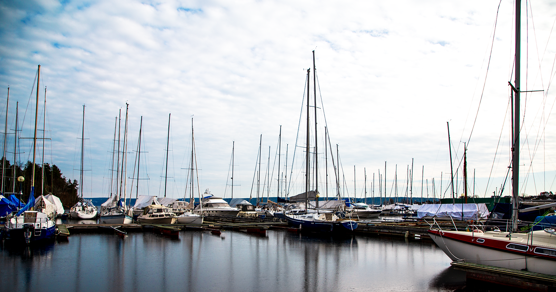 Båtplasser i moderne bryggeanlegg. Boblehavn i vintersesongen